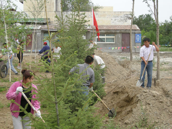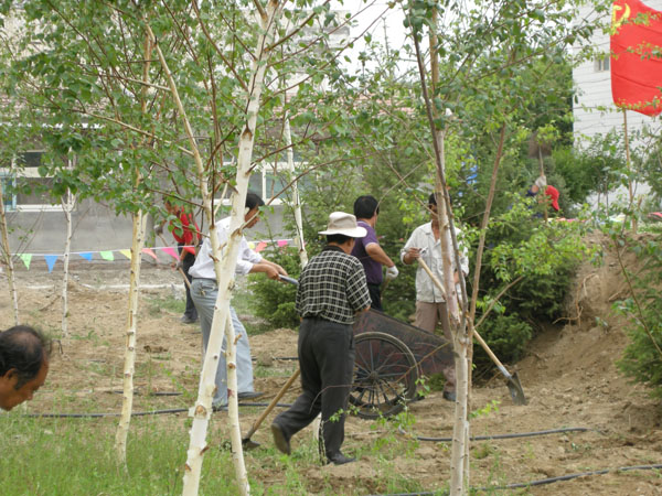 重温入党誓词活动后,总务处全体党员、干部和入党积极分子,来到新配电室旁边开展了一次绿化劳动,以实际行动向党的88周年献礼。