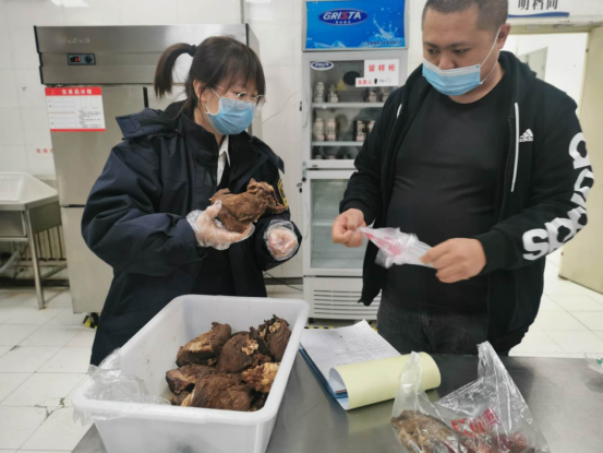 为规范餐厅从业人员经营行为,保障师生餐桌食品安全,总务处首次邀请了海关检验人员来我院进行食品成品抽检,此次抽检主要以馒头、卤肉及煎炸过程用油等自制食品及原材料为重点抽检品种,抽样过程中,工作人员严格执行抽检程序,认真选样,准确封样,及时送样。