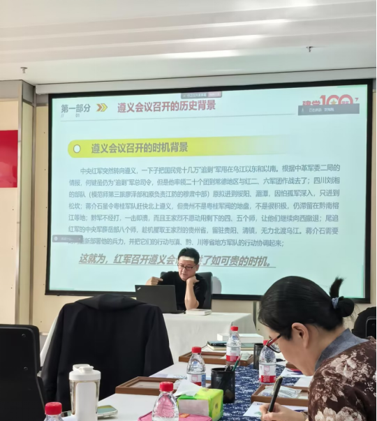 党课上,甫日海提·卡德尔副院长围绕遵义会议的历史背景、核心内容与深远意义展开系统阐述,重点解读了遵义会议“坚持真理、修正错误,确立党中央的正确领导,创造性制定符合中国革命特点的战略策略”的鲜明特点,深入阐述了会议开启党独立自主解决中国革命实际问题新阶段的重大意义。